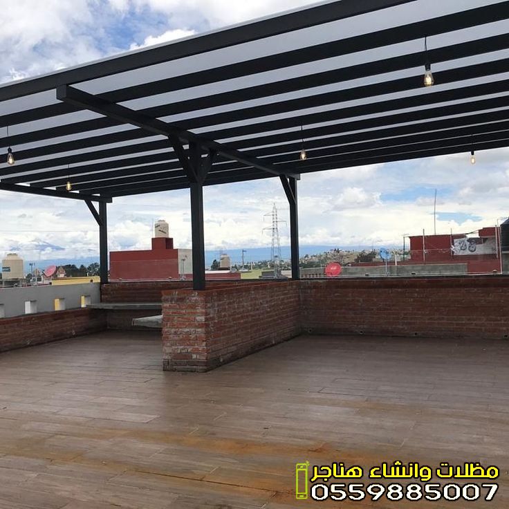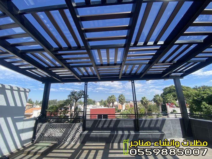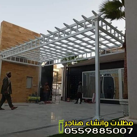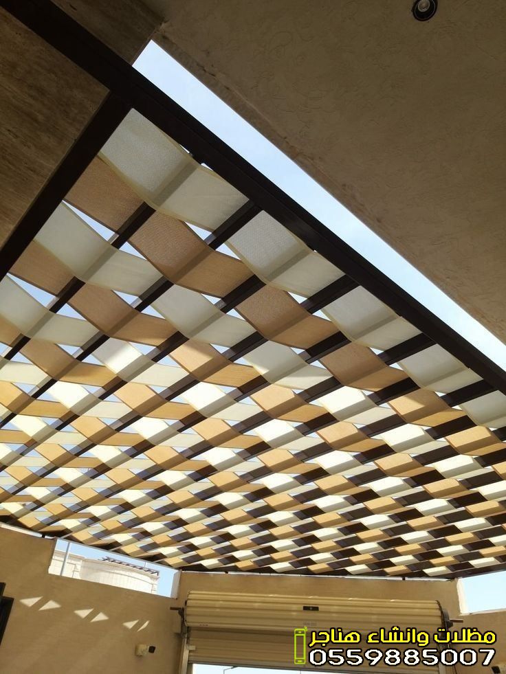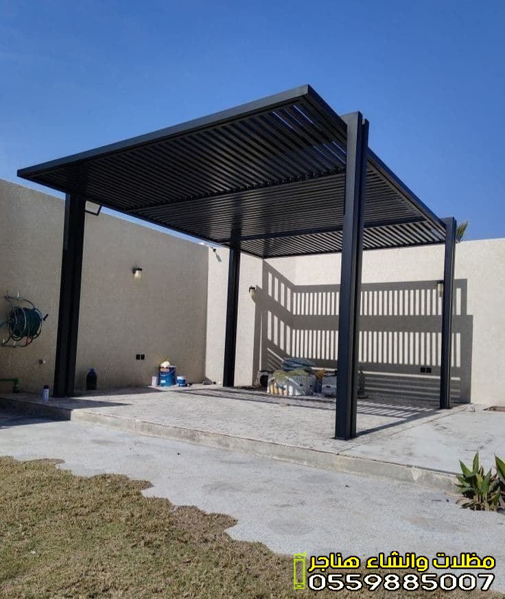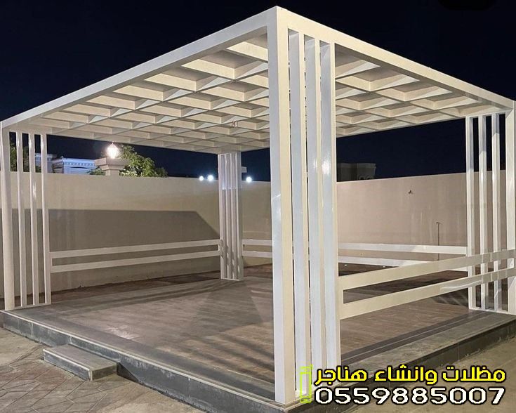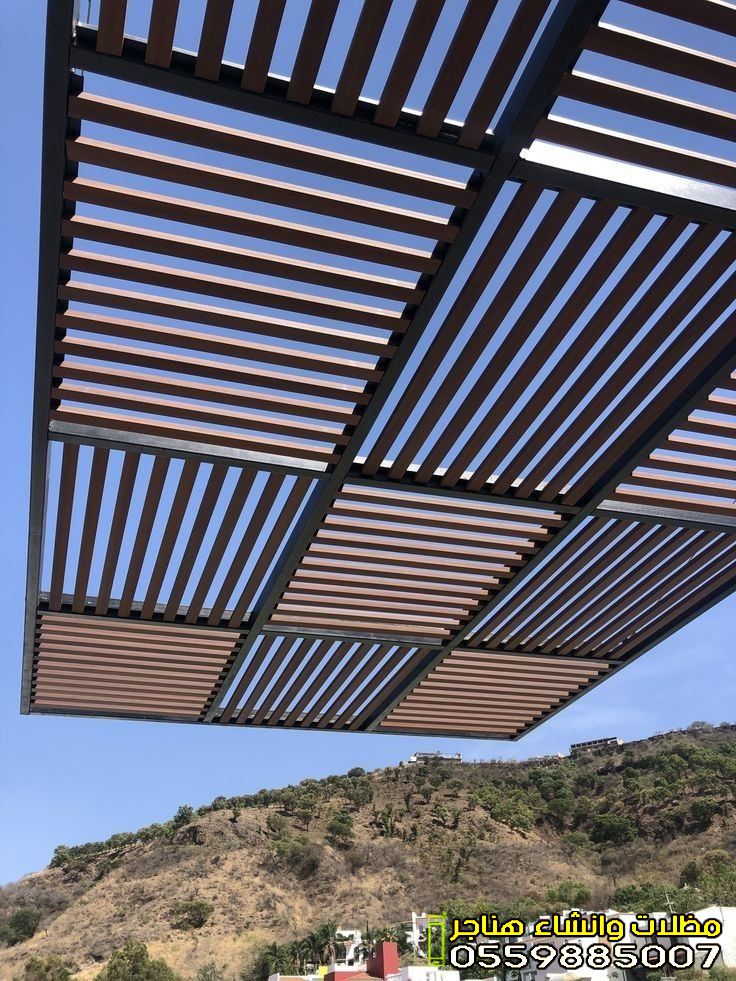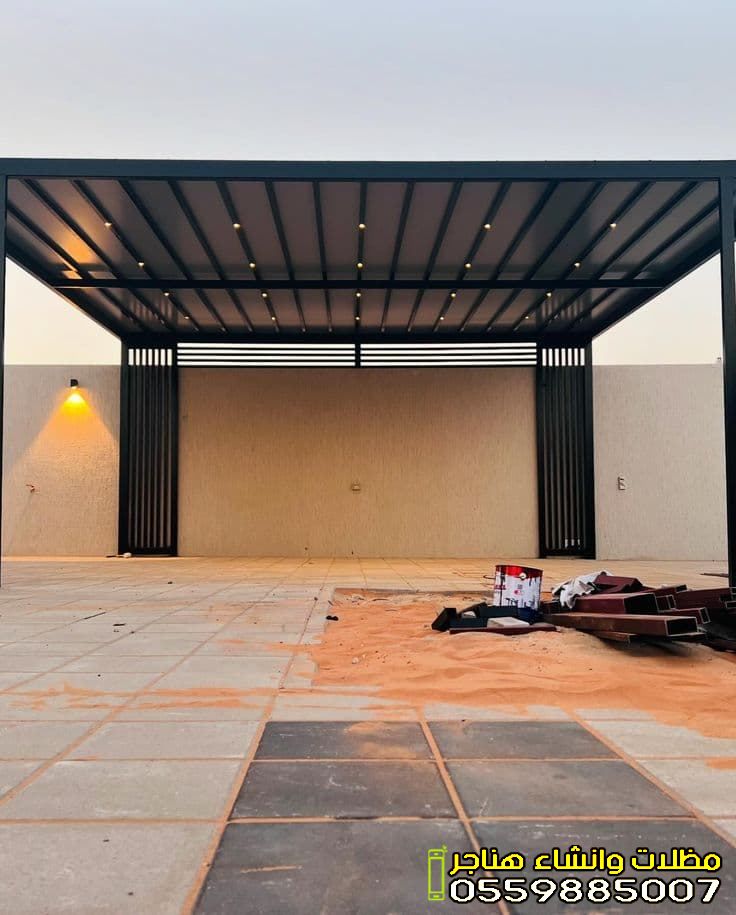 - مظلات الحدائق والجلسات: تمنحك خصوصية تامة ومكاناً بارداً للاسترخاء. تأتي غالباً بتصاميم خشبية (برجولات) أو قماشية فاخرة.