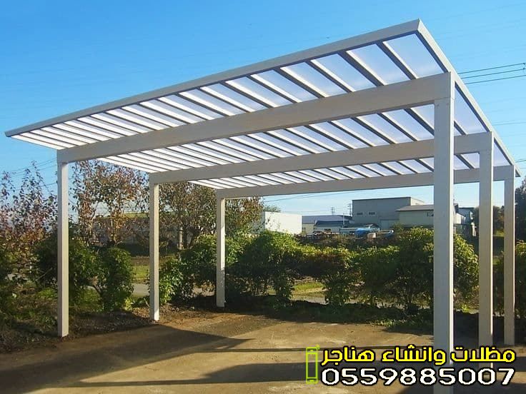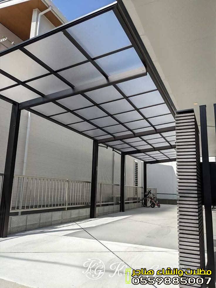 - مظلات السيارات: تهدف لحماية طلاء السيارة والقطع الداخلية من التلف الناتج عن أشعة الشمس فوق البنفسجية. تتوفر بأشكال (كابولي، مخروطي، وإكس).
